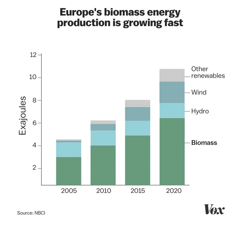Graph showing the energy production of Europe, of which the UK’s Drax power station plays a large part. 1 Exajoule = 277 billion KwH